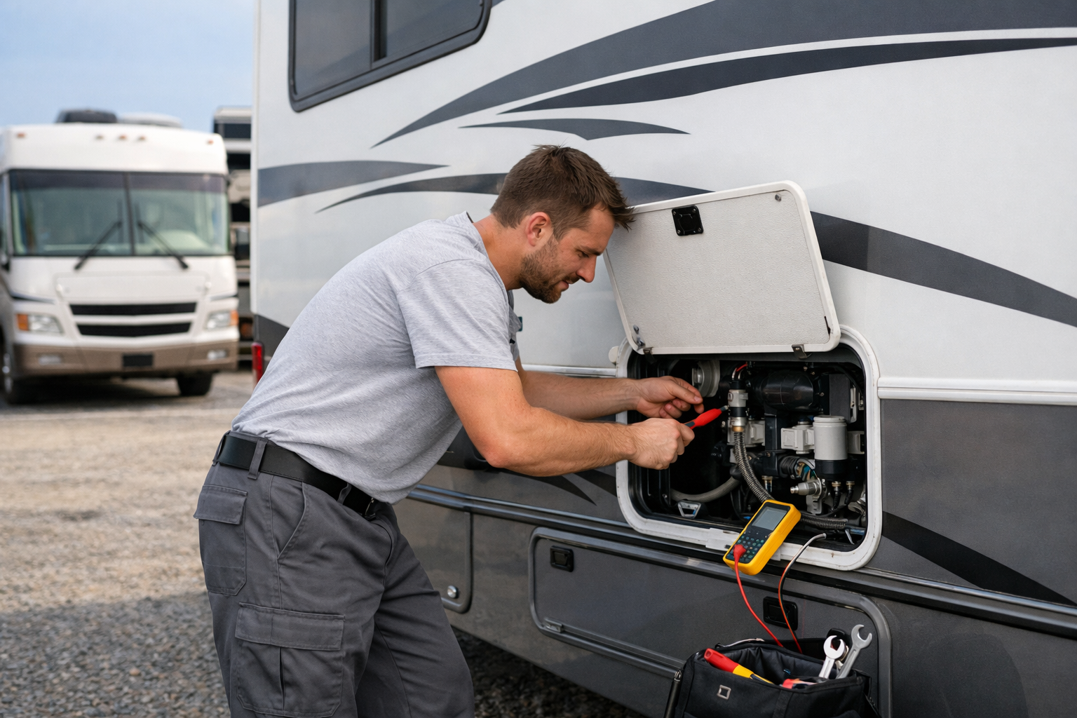 Our services cover a wide range of RV repair needs, including electrical issues, slide-out problems, water leaks, plumbing repairs, appliance troubleshooting, roof sealing, and general maintenance. From travel trailers and fifth wheels to motorhomes and camper vans, we work with all major RV types and brands.